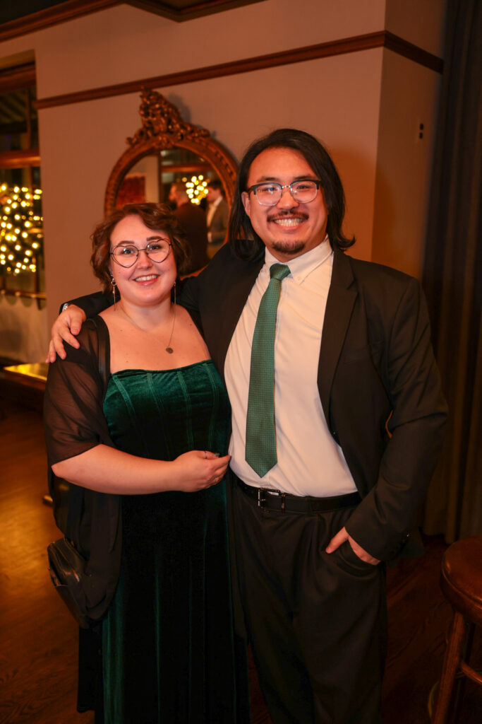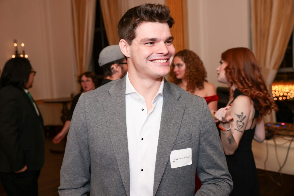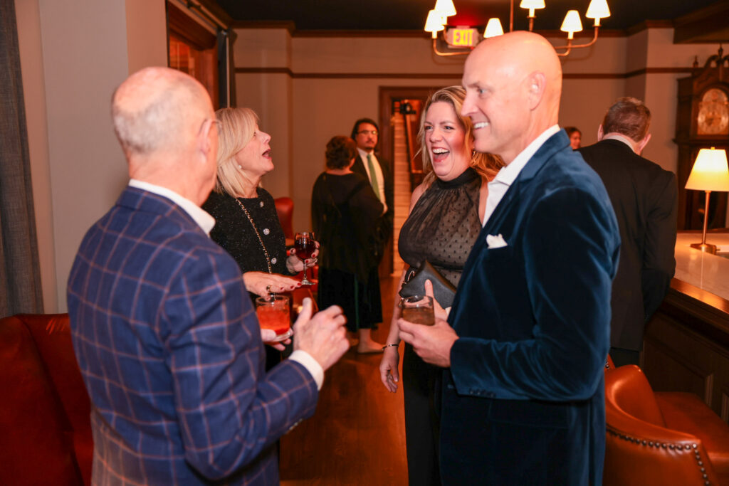 The evening began with cocktail hour on the first floor, where guests arrived, mingled, and enjoyed drinks. Instead of pulling people away for posed photos, we deployed a roaming photographer to naturally capture: